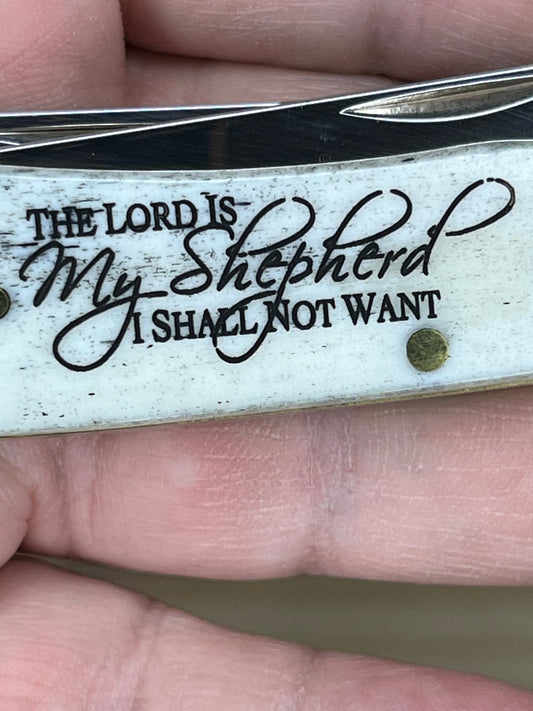 Case Religious Natural Bone Smooth Trapper, Psalm 23 Pocket Knife (CA08795) 7043
