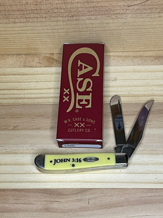 Case Religious Yellow Synthetic Smooth Mini Trapper Pocket Knife (CA08850) 7046