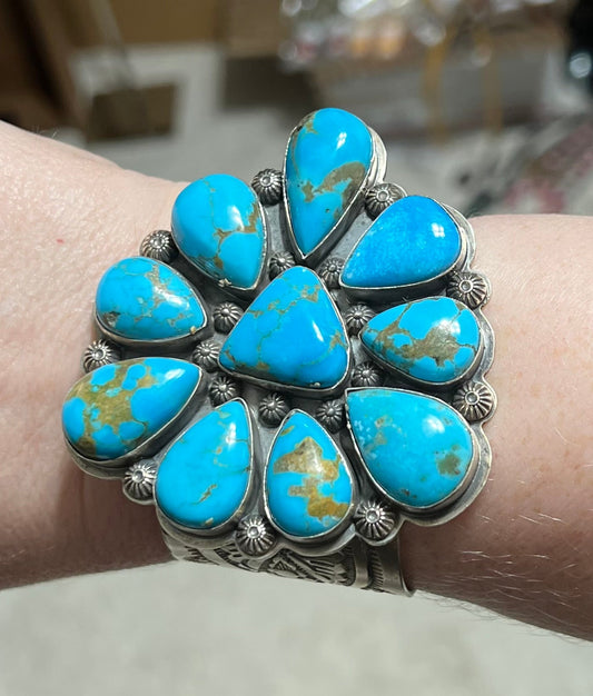 MASSIVE Boyd Ashley Navajo Sterling Silver TURQUOISE CLUSTER Cuff Bracelet 1495