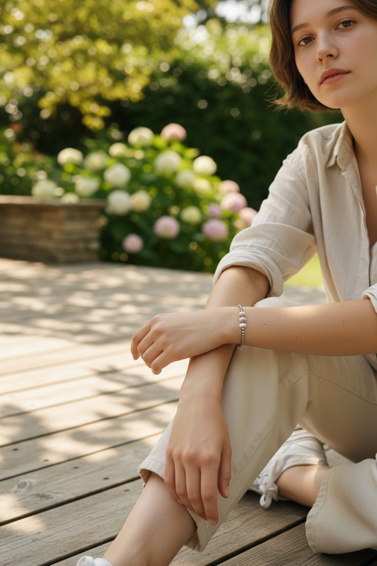 Sterling Silver Pink Conch Beaded Bracelet 1523