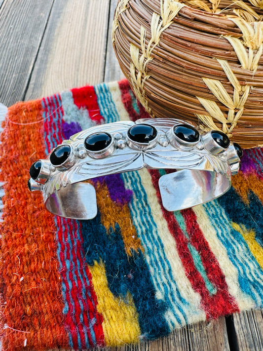 Handcrafted Sterling Silver and Black Onyx Cuff Bracelet