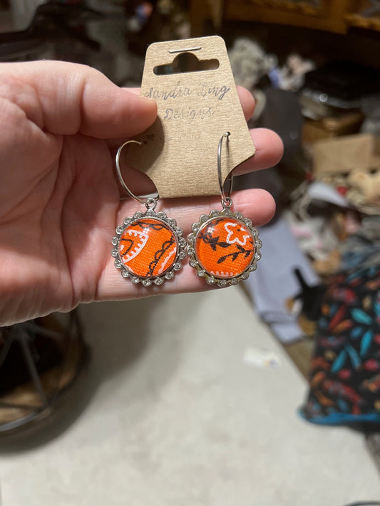 Sandra Ling - Orange Bandana Earring and Bracelet set 1274