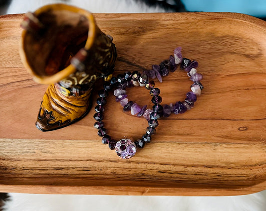 Deep Purple Druzy Double Stack Glam Stretch Bracelets 1229