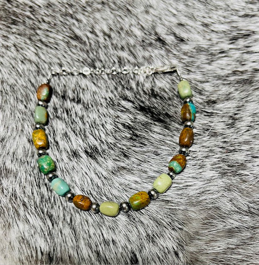 Indian Head Stretch Bracelet with Faux Turquoise Stones 1244
