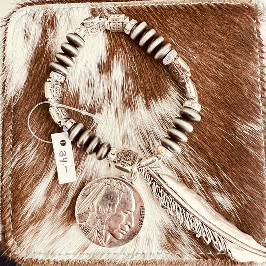 Native American Buffalo Coin Bohemian Stretch Bracelet 1252