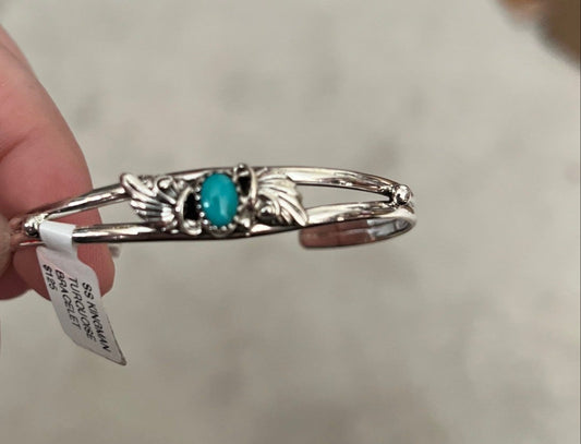 Navajo Handmade Sterling silver Cuff with Turquoise Stone Bracelet 1257