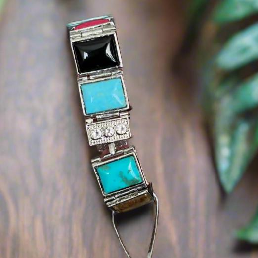 Faux Turquoise Square Fashion Bracelet with security clasp 1235
