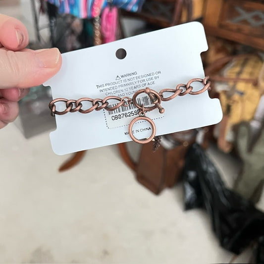 Turquoise Patina Two-Tone 'Strong' Boot Charm Toggle Bracelet 1291