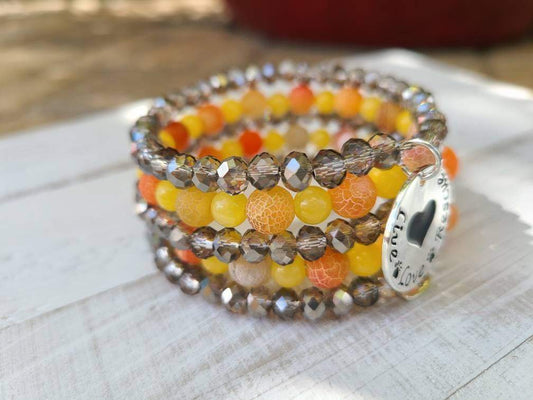 SPCA/Rescue Yellow/orange awareness beaded bracelet 1286