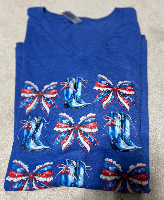 Patriotic Bow and Cowboy Boot Graphic Tee 3506