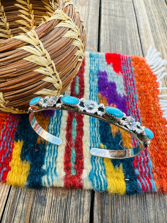 Handcrafted Turquoise & Sterling Silver Flower Stacker Cuff Bracelet