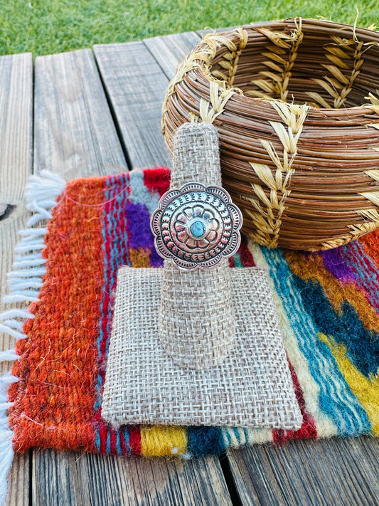Handcrafted Turquoise & Sterling Silver Concho Ring