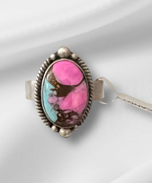 Sterling Silver Pink Conch Turquoise and Carnelian Ring Size 9.5 (No 603) 1124