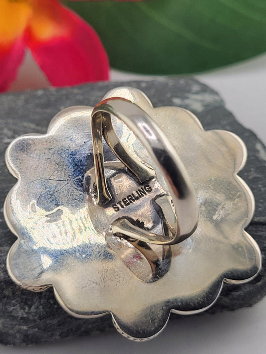 Genuine Kingman Turquoise Flower Sterling Silver Cluster Ring - Non Native (No 121) 1085