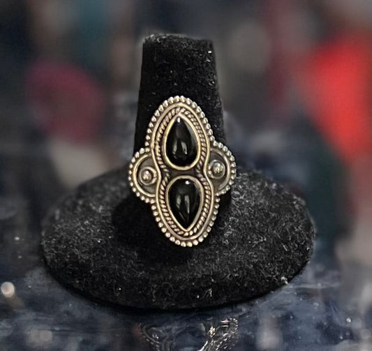 Genuine Black Onyx Sterling Silver Ring (Size 9) 1456