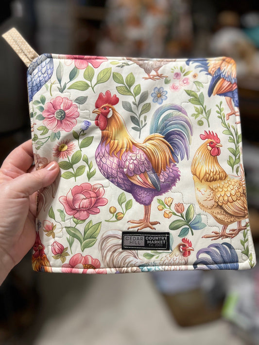 Crazy Chicken Lady Floral Pattern Pot Holders/Trivets with Loop 0113