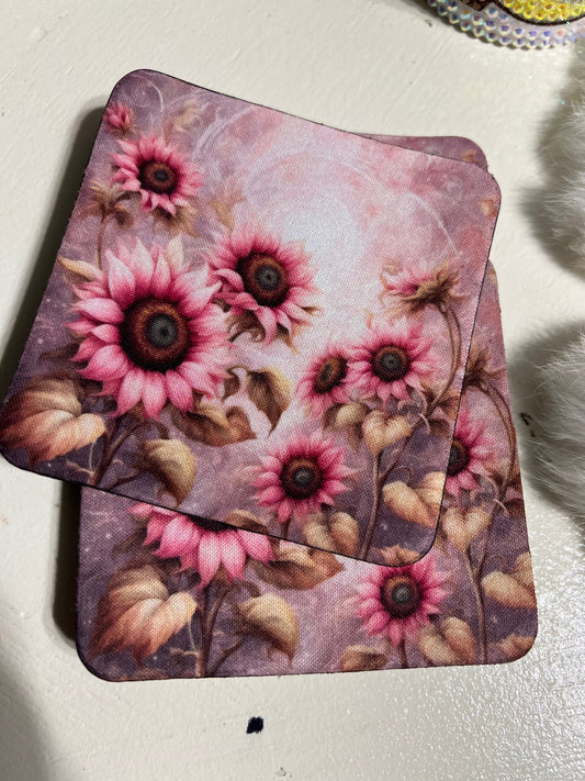Pink Sunflower Neoprene 4 Inch Square Coasters (Set of 4) 0167