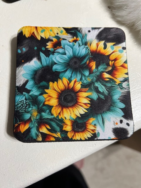 Turquoise Sunflower Neoprene 4 Inch Square Coasters (Set of 4) 0166