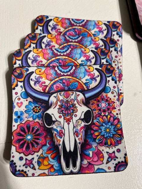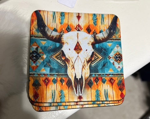 Bohemian Western Bullhead Neoprene 4 Inch Square Coasters (Set of 4) 0163