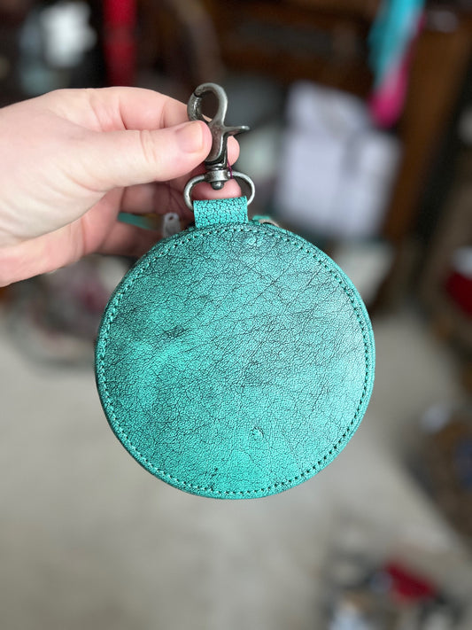 Genuine Leather Hand Cow Hide Round Jewelry Storage with Zipper Closure 1569