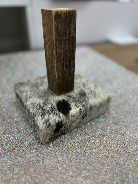 Cowhide and Teakwood Necklace Stand 0500