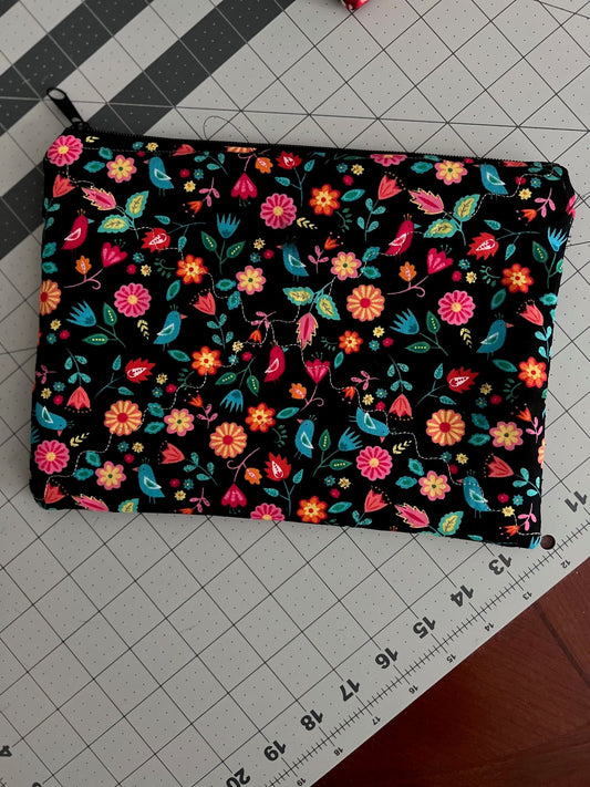 Little Birdie Black Floral Zipper Make Up Bag 1758