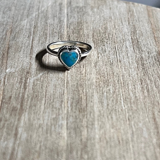 Genuine SS and Turquoise Heart Ring (Size 5.5) 1524