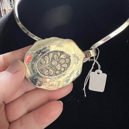 Genuine Turquoise and Pink Conch Tibetan Silver 2 1/2”Pendant