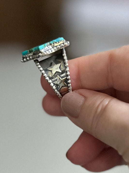 Genuine Turquoise Sterling Silver and Star Ring Size 9.5