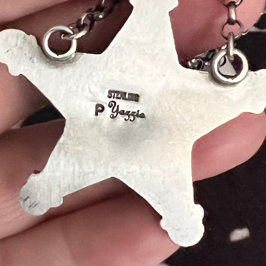 Sterling Silver Genuine Kingman Turquoise Star Pendant Necklace 1514