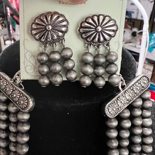 Silver Navajo Inspired Western Concho Statement Necklace Set 0726