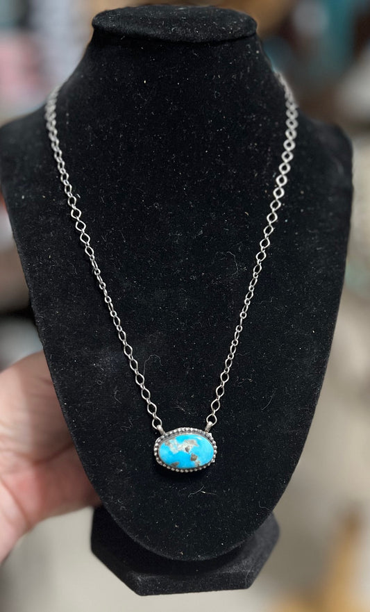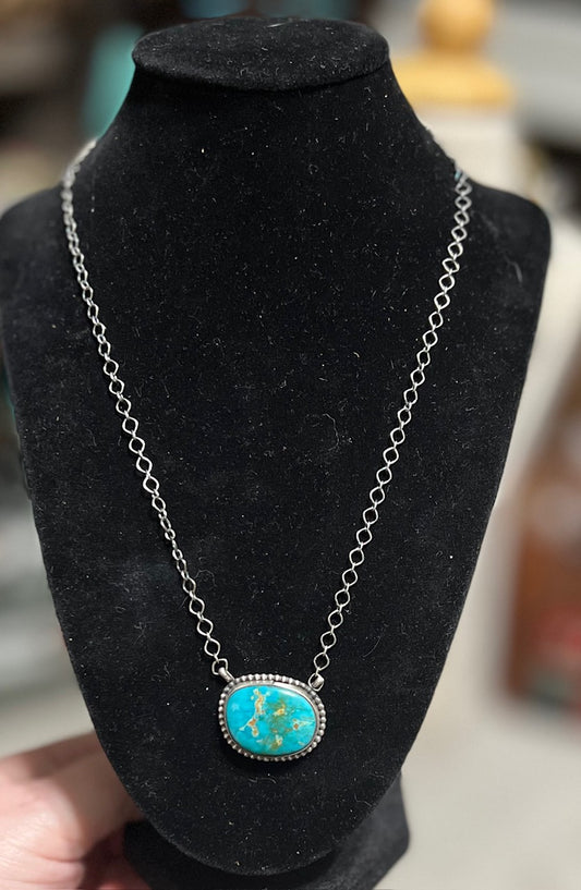 Artist - Scott Skeets Navajo Handmade Royston Turquoise 18 inch Necklace 0468