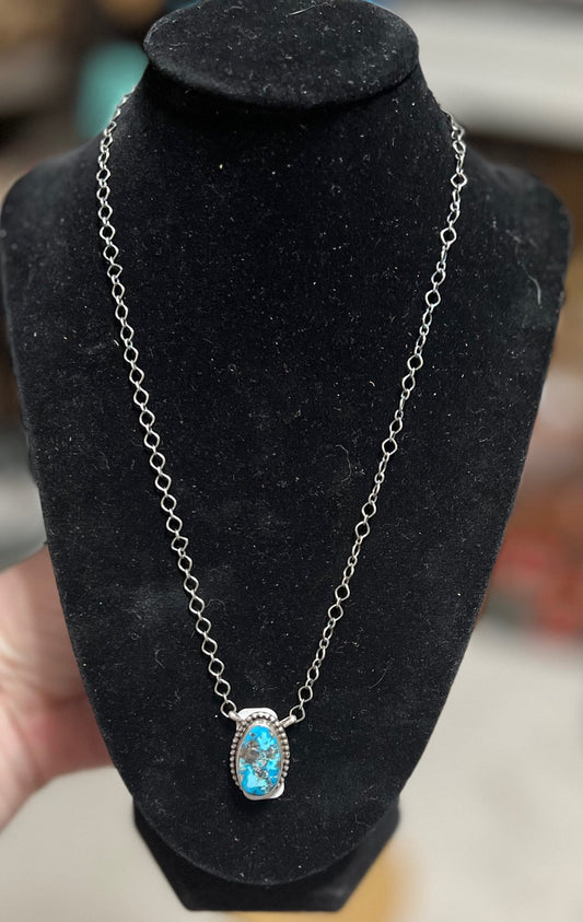 Artist - Scott Skeets Handmade Navajo Blue Ridge Turquoise Necklace (18 inch) 0466