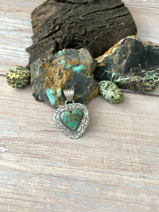 Handmade Sterling Silver Mantis Turquoise Heart Pendant " Signed Nizhoni"