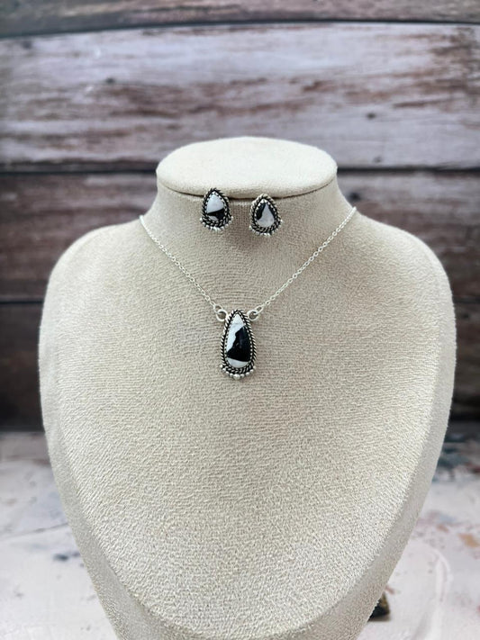 Handmade Sterling Silver White Buffalo Necklace Earrings Set "Signed Nizhoni"