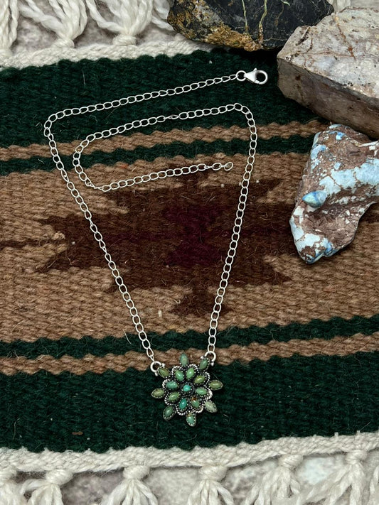 Handmade Sterling Silver Kingman Turquoise Necklace "Signed Nizhoni"