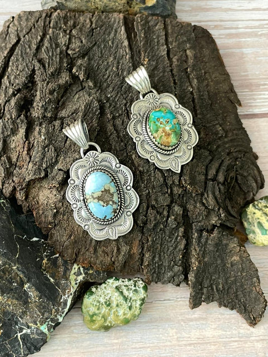 Handmade Sterling Silver Sonoran Mountain Turquoise, Golden Hills Turquoise Pendant " Signed Nizhoni"