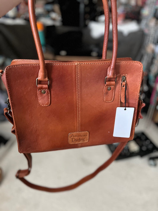 Cowhide Tote Bag with Tooled Leather Handles 2053