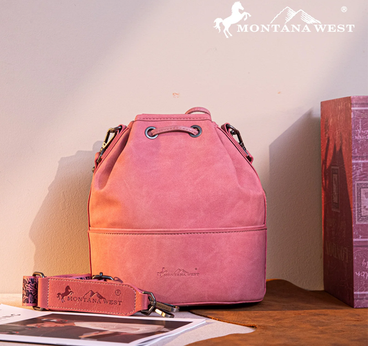 Montana West Cowhide Tooled Bucket Shoulder/Crossbody Bag and Wallet 2152