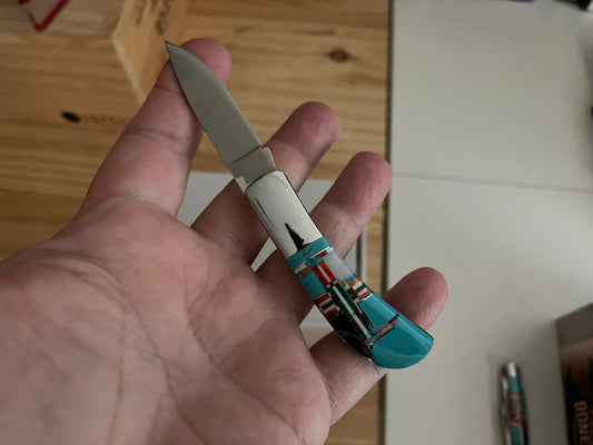 Southwestern Native Style Turquoise Multi Inlay Pocket Knife (188bc10) 6017