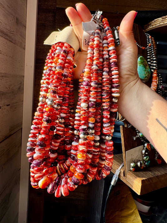 BE BOLD - 22-Inch Spiny Oyster & Wampum Statement Necklace with Sterling Silver Pearls