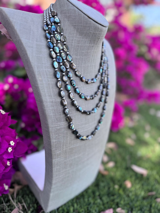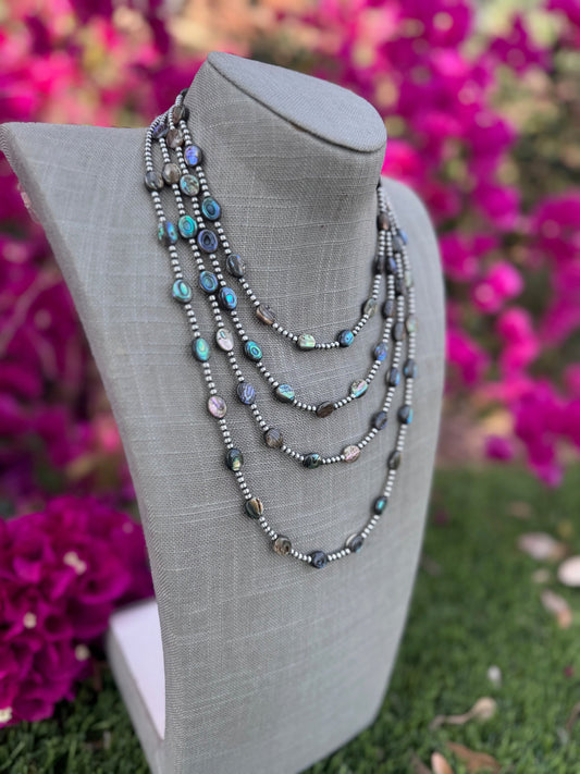 Handcrafted Abalone & Sterling Silver Pearl 3mm Beaded Necklace
