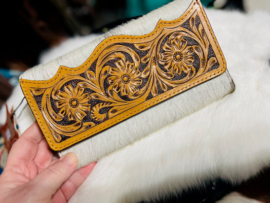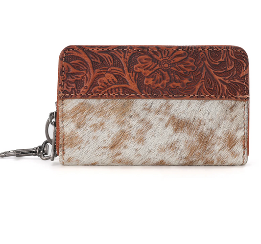 Trinity Ranch Genuine Cowhide Hair-On Floral Tooled Collection Mini Wallet 2119