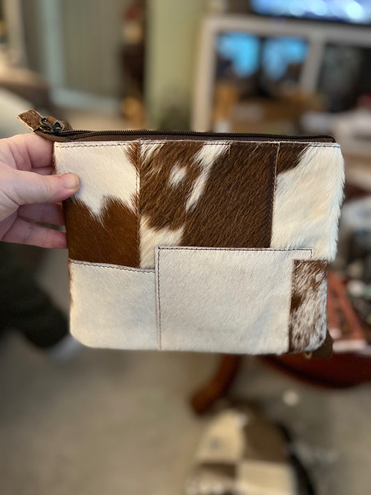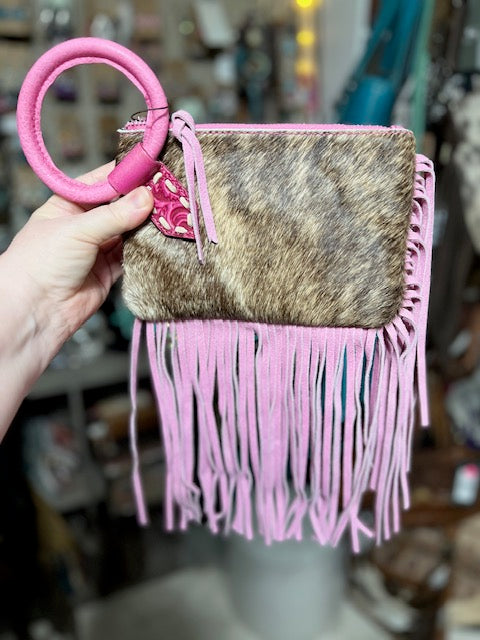Trinity Ranch Genuine Hair-On Cowhide Ring Handle Wristlet Clutch Bag 2097