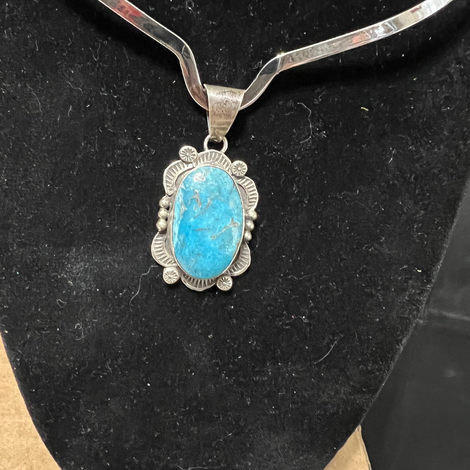 Artist - Juanita Long Handmade Navajo Genuine Turquoise Pendant 0306