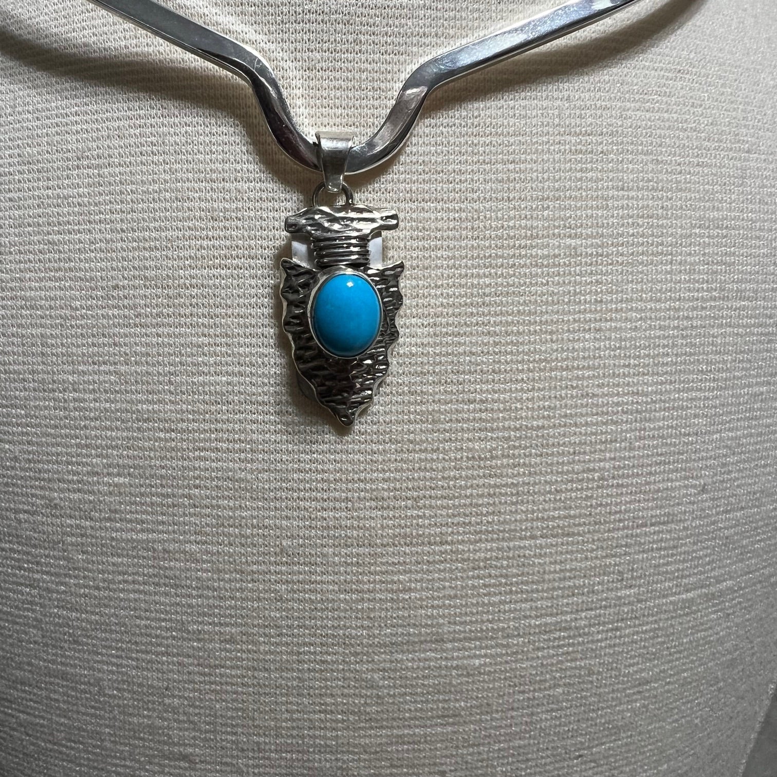 Artist -June Degarito / Navajo Handmade Kingman Turquoise Pendant -Sterling Silver Arrow Head 0311