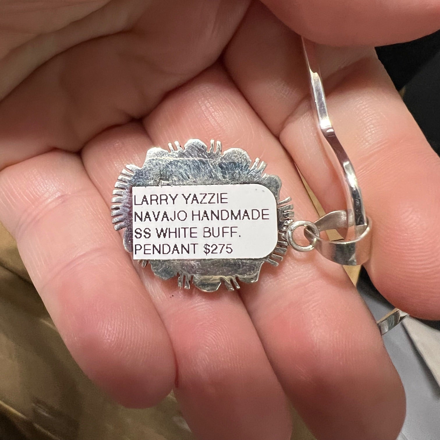This stunning pendant, handmade by renowned Navajo artist Larry Yazzie, showcases the beauty and rarity of the white buffalo. With its intricate design and skilled craftsmanship, this pendant is a testament to the value and uniqueness of Native American art. Add a touch of culture and beauty to your jewelry collection with this one-of-a-kind piece.