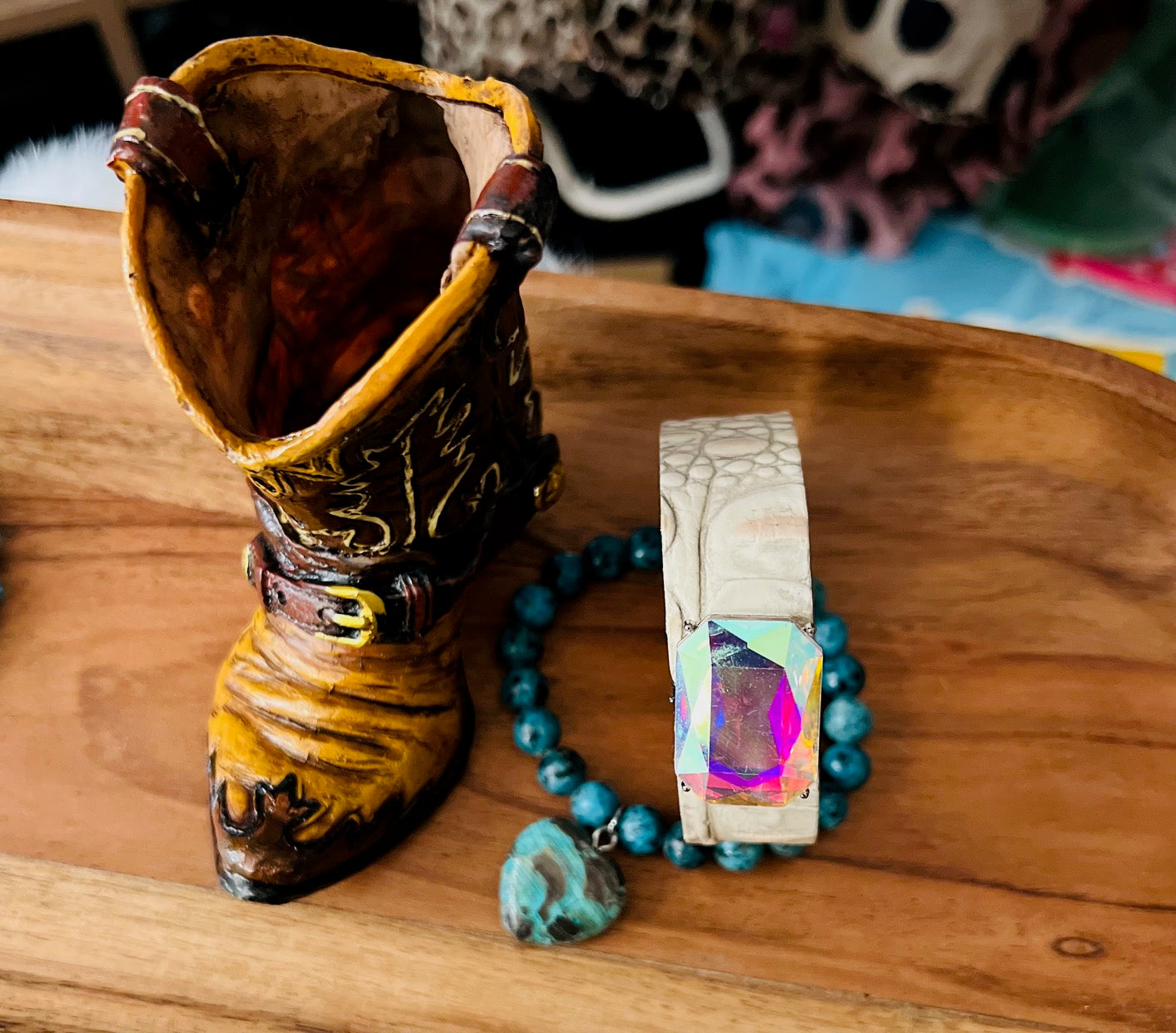 Choose between the Glam Bar and the Turquoise Heart with Genuine Leather AB Stone