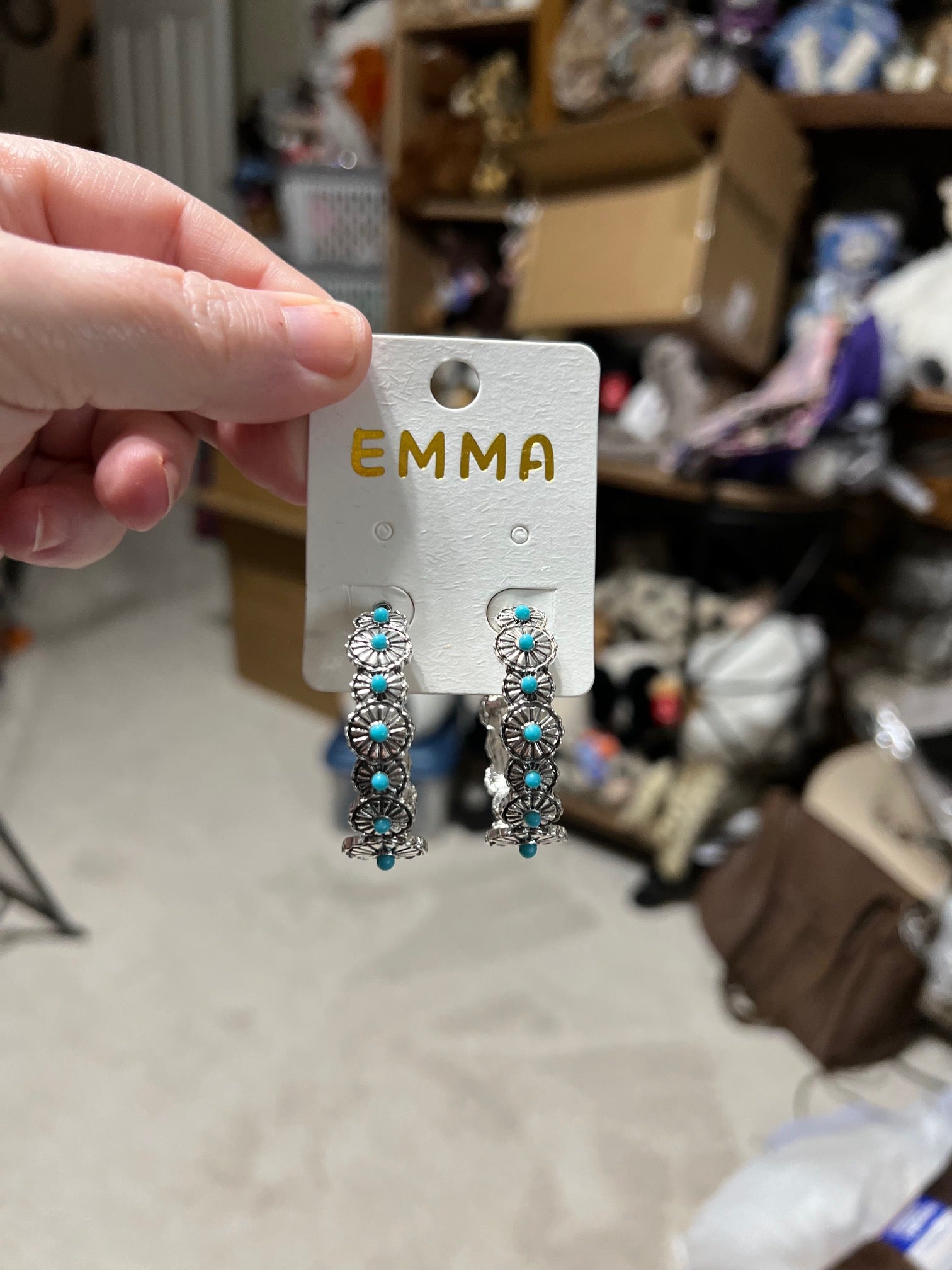 Turquoise and Silver Flower Hoops (2 inch) 1580